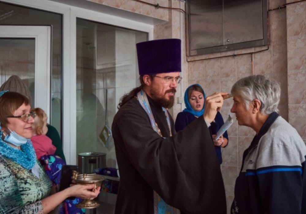 После молебна иерей Дионисий обошел палаты, окропил их святой водой и навестил больных, обратившись к ним со словом утешения и поддержки.
